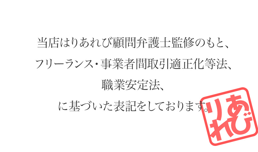 専属の女性カメラマンによる写メ日記用の写真撮影がある場合はご協力お願いいたします。マンツーマンでの対応です。※※『S売り』『過度な攻め売り』禁止。